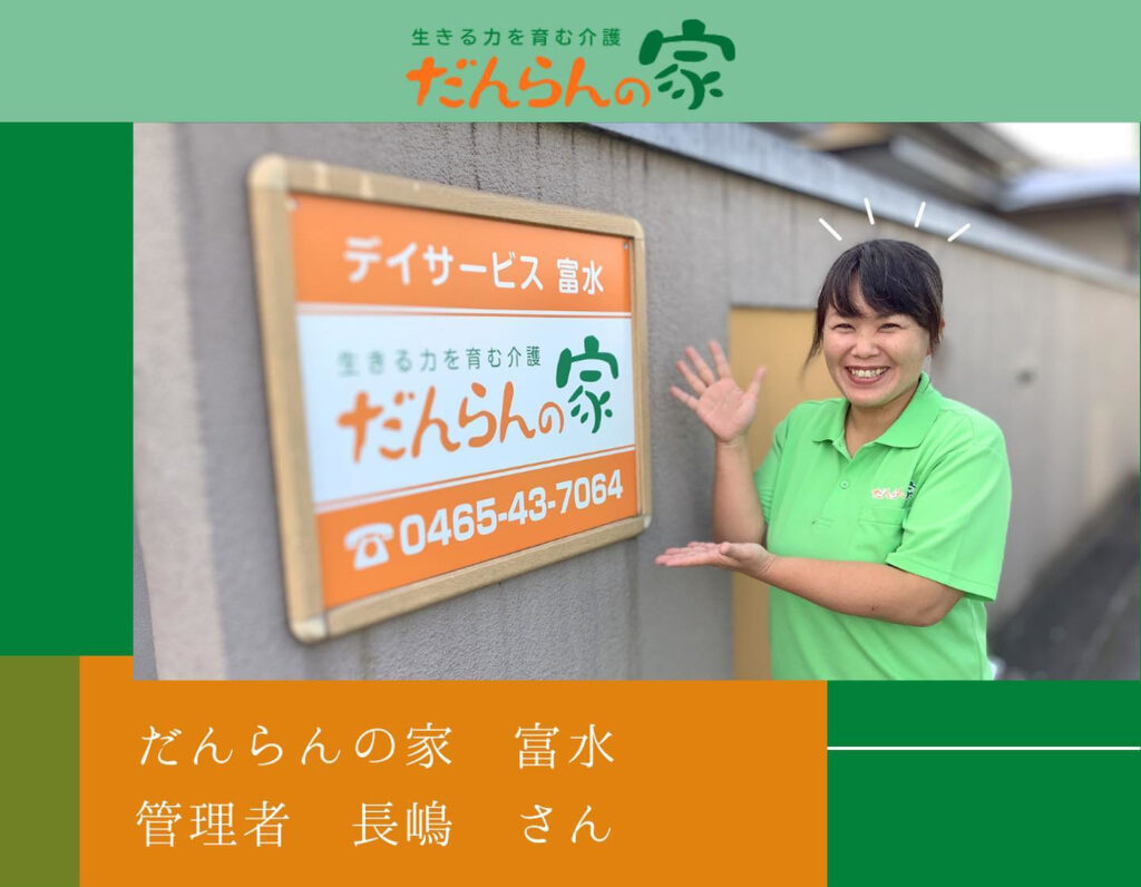 10名定員のデイサービスだんらんの家は、スタッフも少人数。どんな人と働くかはとても気になりますよね。小田原にあるだんらんの家富水事業所では、スタッフを募集しています。興味を持たれたら、ぜひ職場見学をして長嶋さんとお話をしてみてください。