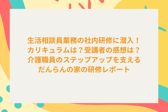 今回のレポートで分かったのは、だんらんの家の研修は単なる「お勉強」ではなく、「現場に戻ってすぐに使える実践力」を養う場であるということです。 本部担当者も「実際に研修を受けた職員さんは事業所に戻ってから出来る業務が増え、事業所運営の質も向上している」と手応えを語っています。